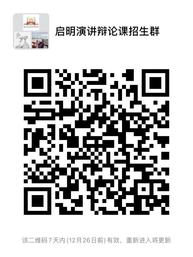 Starting in January, 2020, Enlighten Enrichment School will bring you a series of academy debate programs. The following link is the description of the program:
